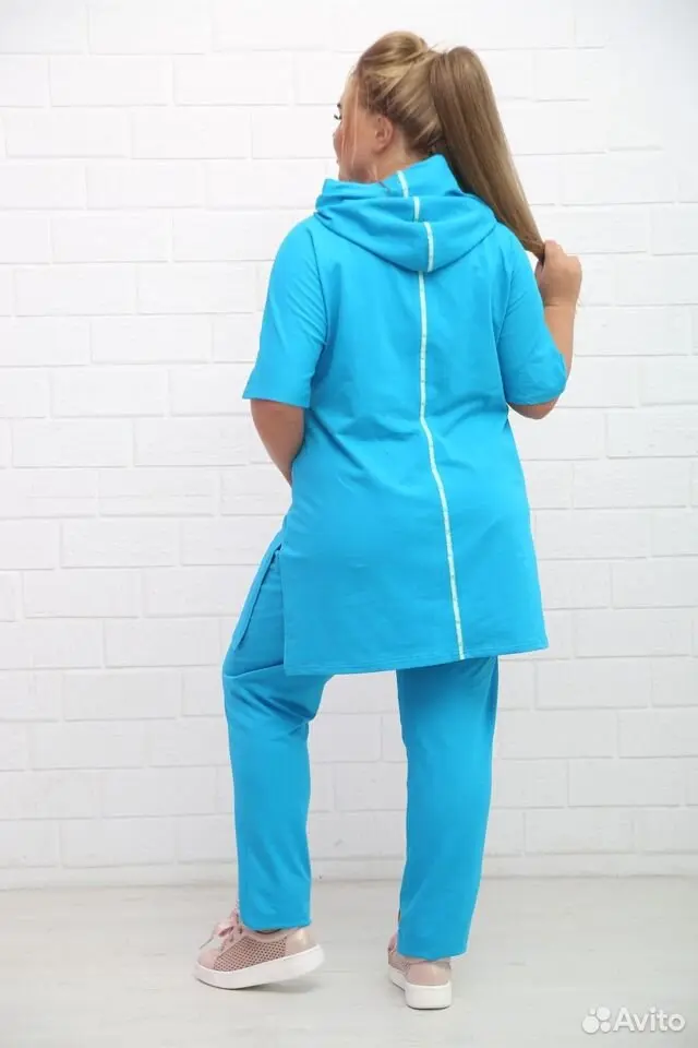 Брюки без карманов, длина 115 см, туника длина 85 см.