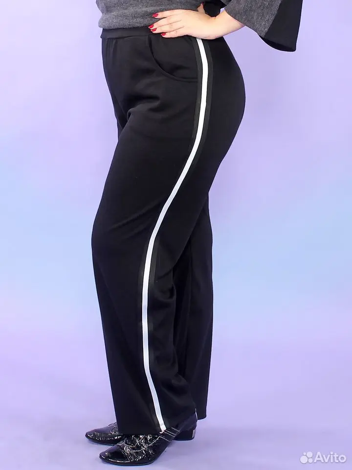 Брюки с карманами и лампасами из сетки из мягкого трикотажа дайвинг стрейч. Длина около 105 см.