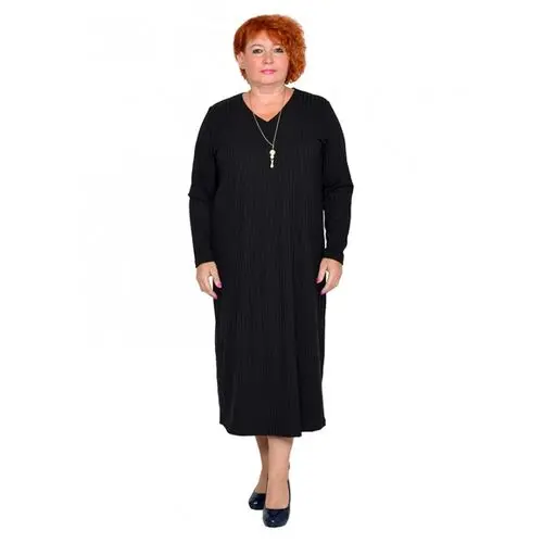 Платье с V-образным вырезом из трикотажного полотна «лапша». Состав 35% вискоза, 60% пэ, 5% эластан. Длина 115-125 см.