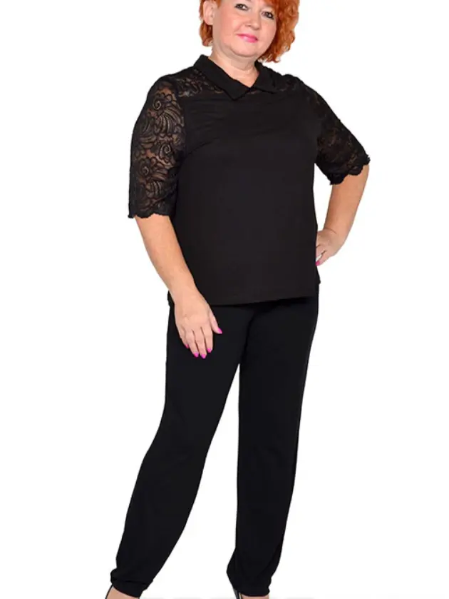 Блуза из трикотажа вискоза с отделкой эластичным кружевом черная