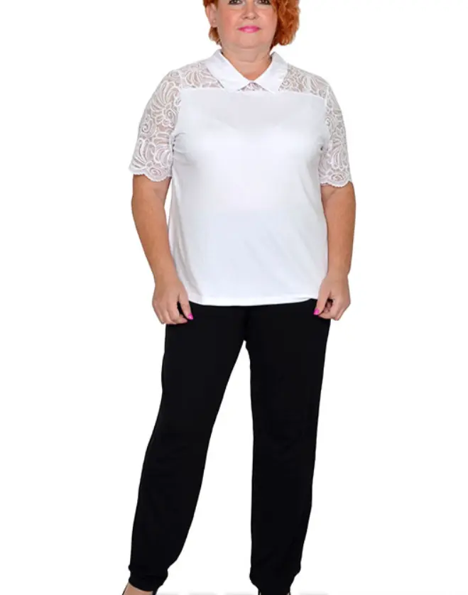 Блуза из трикотажа вискоза с отделкой эластичным кружевом белая