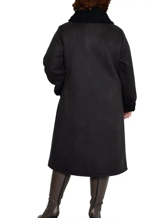 Дубленка из искусственной двухсторонней замши, с карманами , с большим отгибающимся воротником, застежка-молния. Ткань хорошо тянется, теплая. приятная к телу, не мнется.. Состав пэ 95% и эластан 5 %. Модель без подкладки на прохладную погоду., евро зима. Длина 105-115 см.