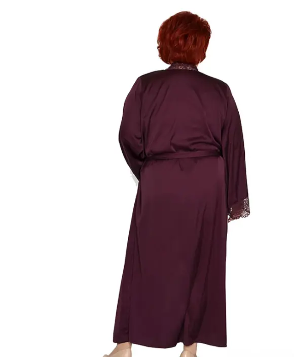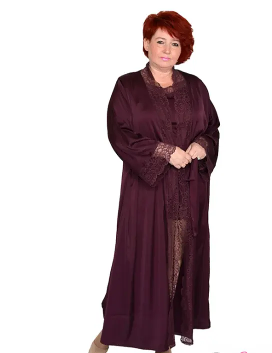 Халат из шелка с трикотажным кружевом.