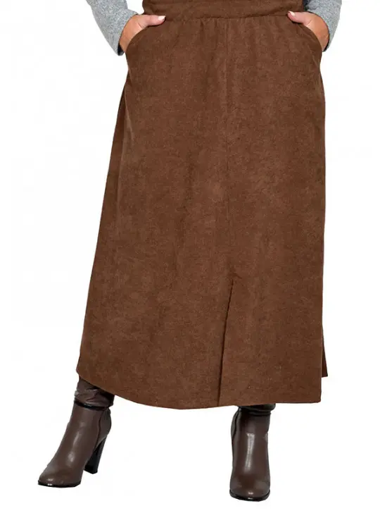 Юбка с карманами, пояс на широкой резинке из ткани микровельвет. Состав хлопок 25%, пэ 75%. Ткань не мнется, не тянется, приятная к телу, легкая и теплая.