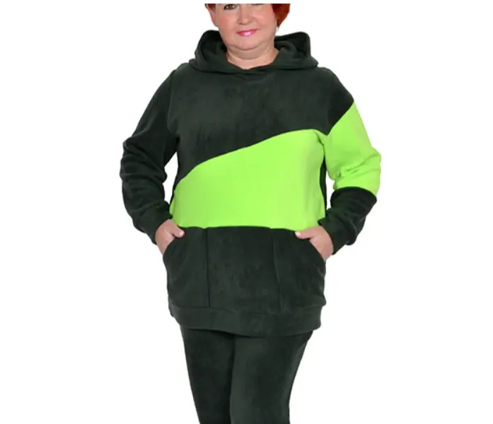 Толстовка из трикотажа флис из двух цветов - зеленая