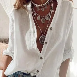 Женская рубашка из хлопка с расклешенными рукавами