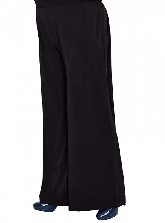 Брюки широкие из трикотажного полотна масло. Состав пэ 100%. Ткань не мнется, приятная к телу. Летом хорошо передает прохладу телу. Пояс на широкой резинке.