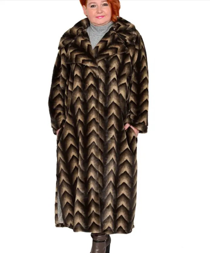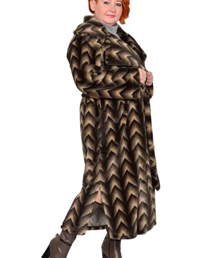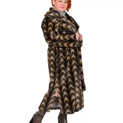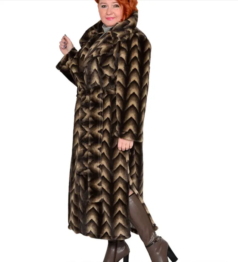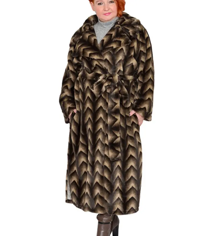 Шубка из искусственного меха под шиншиллу. Состав 100% полиэстер. Модель без подкладки, с большим английским воротником, с карманами в боковых швах, с поясом. Застежка потайные кнопки. Евро-Зима.