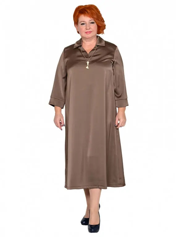 Платье из ткани шелк атласный. Состав пэ 100%. Ткань приятная к телу, плотная, струящаяся. Пояс на широкой резинке. Модель с воротником, рукав втачной, манжет застегивается на кнопку.