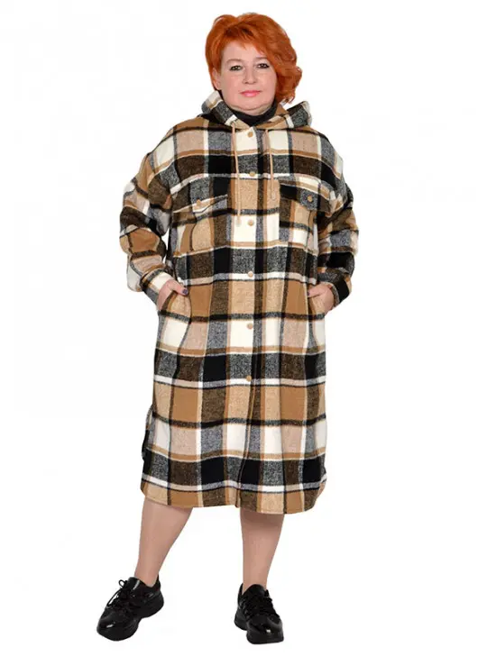 Пальто в клетку с разрезами из ткани барашек размеры 50-84