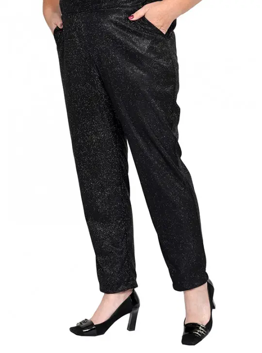 Брюки из трикотажного полотна масло, при движении переливается. Состав пэ 95%, 5% эластан. Ткань не мнется, не колется, приятная к телу. Модель с карманами, пояс на широкой резинке.