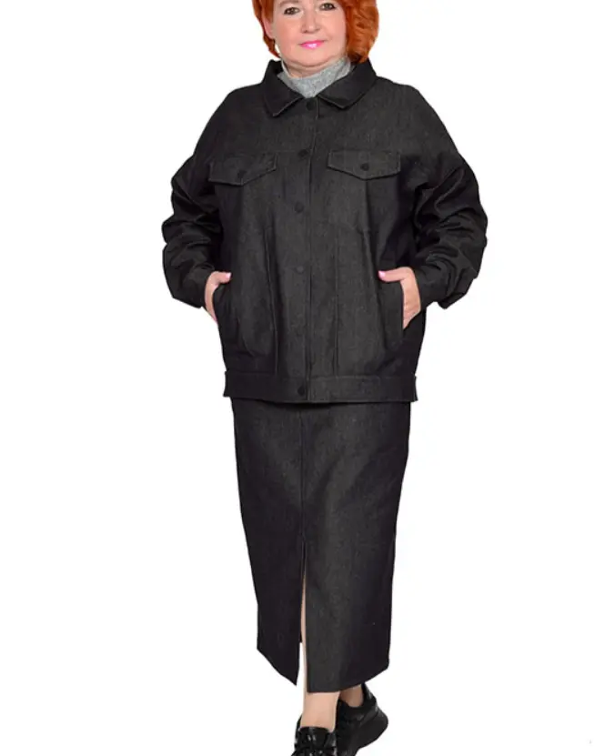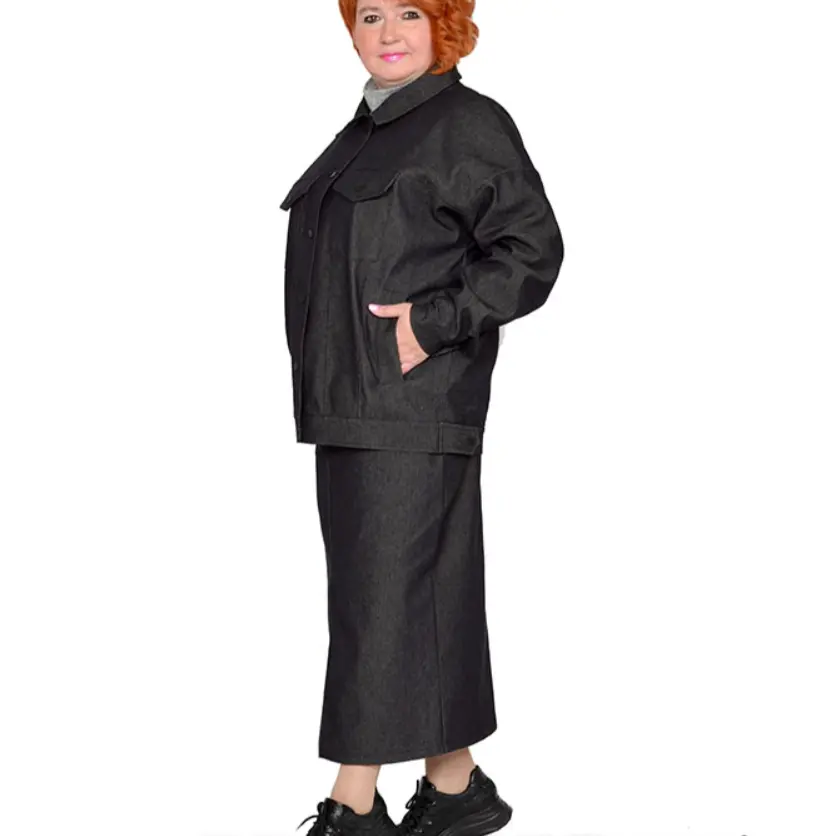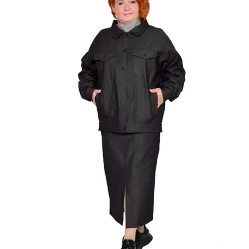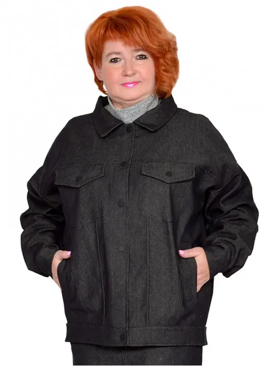 Куртка из плотной джинсовой ткани на кнопках, с карманами. Состав 65% хлопок, 35% пэ. Пояс на широкой резинке.