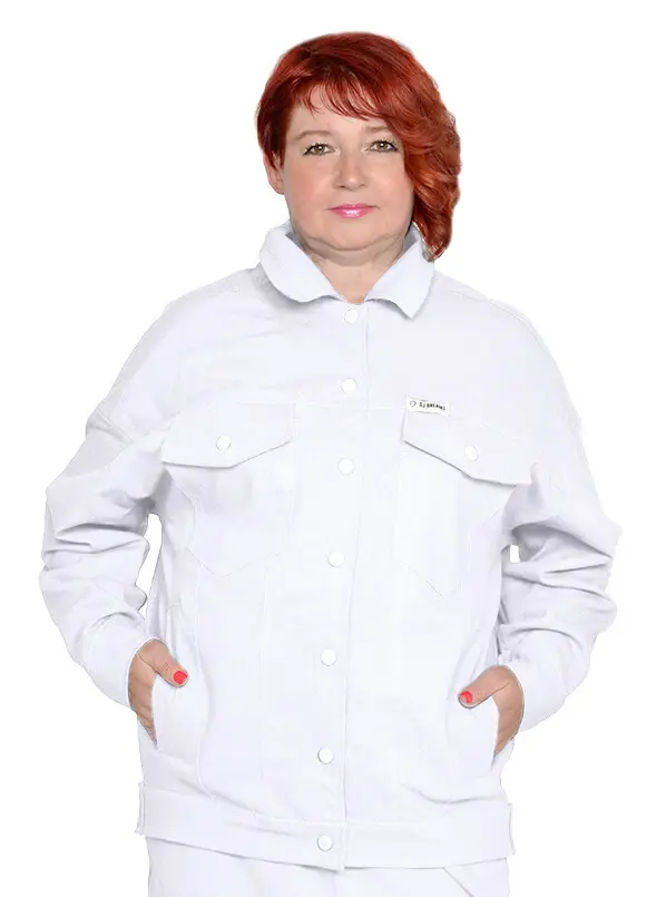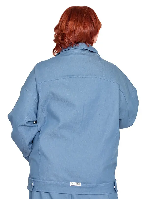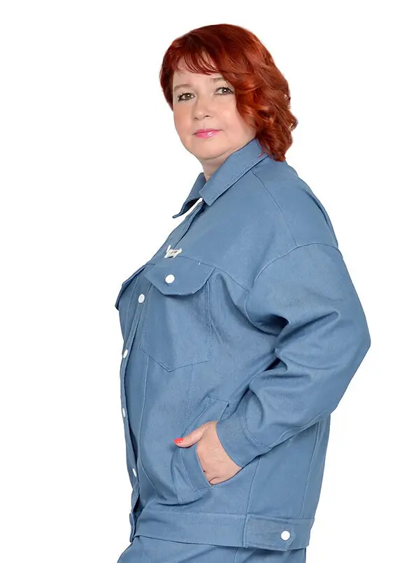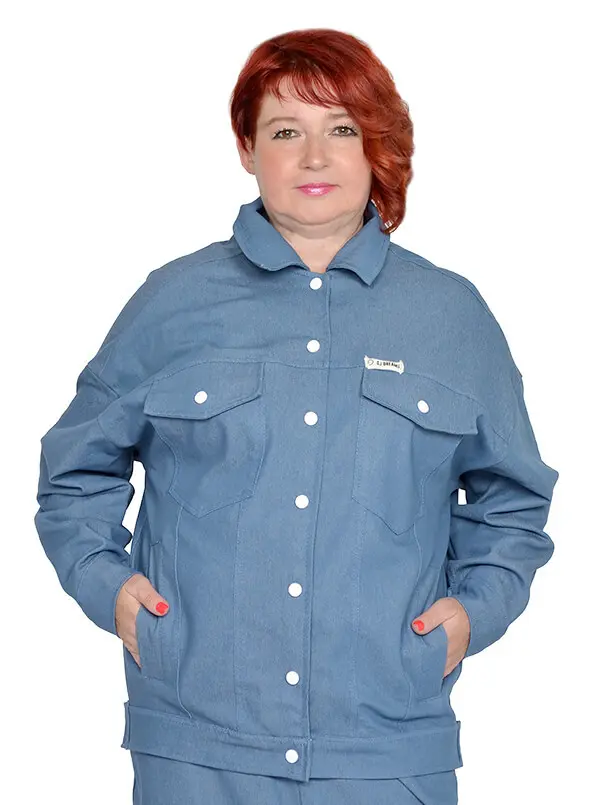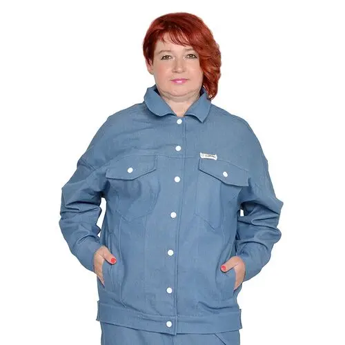 Куртка из плотной джинсовой ткани на кнопках, с карманами. Состав 65% хлопок и 35% пэ.