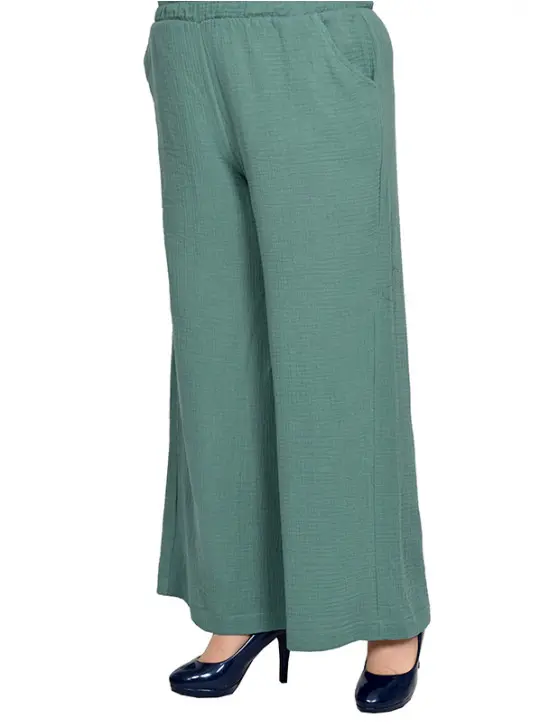 Брюки с карманами из ткани муслин. Состав 100% хлопок. Пояс на широкой резинке. Ткань приятная к телу, легкая, не мнется, не тянется.