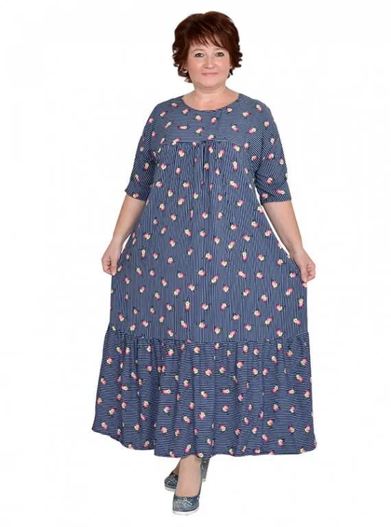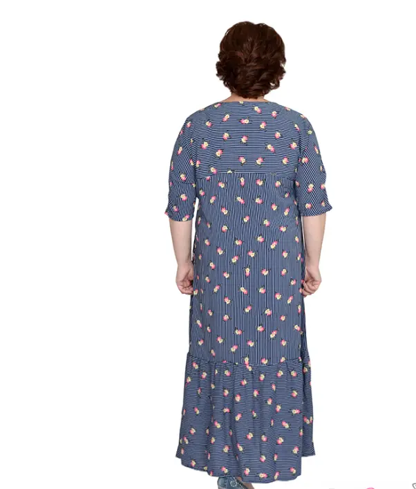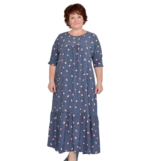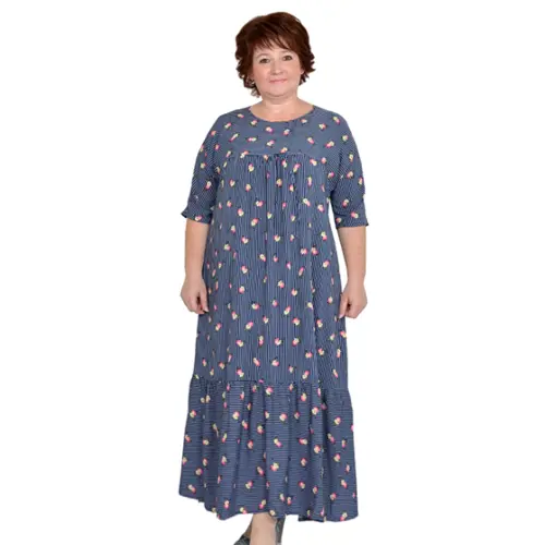 Платье - ткань штапель. Состав плательная вискоза. Ткань не тянется, легкая, приятная к телу. Рукав переходит в кокетку, на груди небольшая сборка для свободы облегания. Платье расклешенное, по низу оборка. Длина 125-135 см.