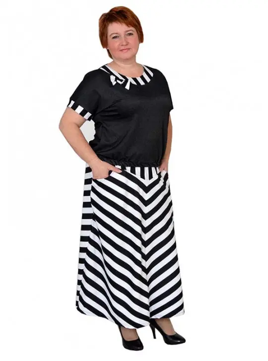 Платье-рубашка в полоску с боковыми разрезами размеры 50-84