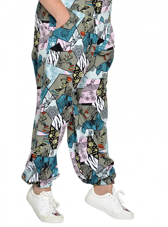 Брюки-султанки с карманами из трикотажного полотна. Пояс на широкой резинке, по переду кокетка. Состав хлопок 100%.