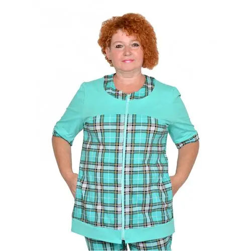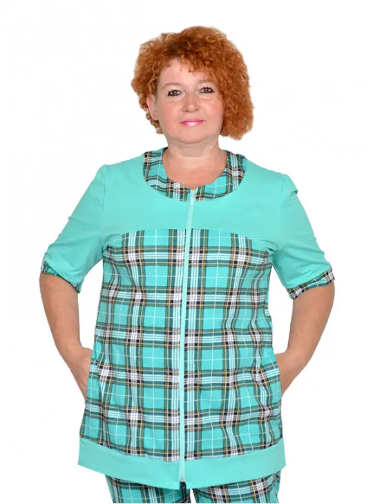 Туника из трикотажного полотна. Модель на молнии, с карманами, с кокеткой из ткани компаньона. Состав хлопок 100%.