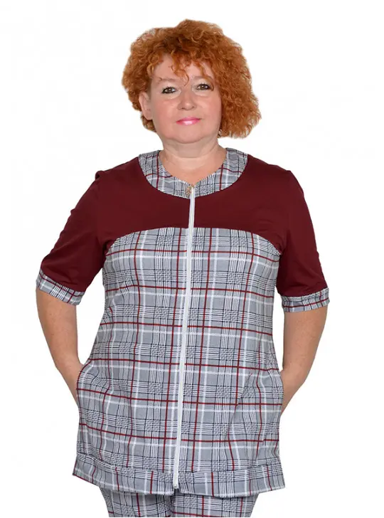 Туника из трикотажного полотна. Модель на молнии, с карманами, с кокеткой из ткани компаньона. Состав хлопок 100%.