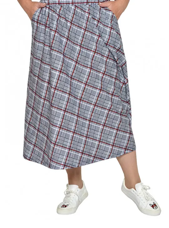 Юбка с карманами из трикотажного полотна. Пояс на широкой резинке. Состав хлопок 100%.