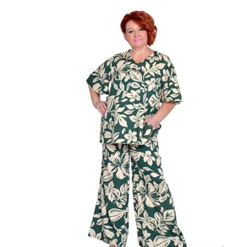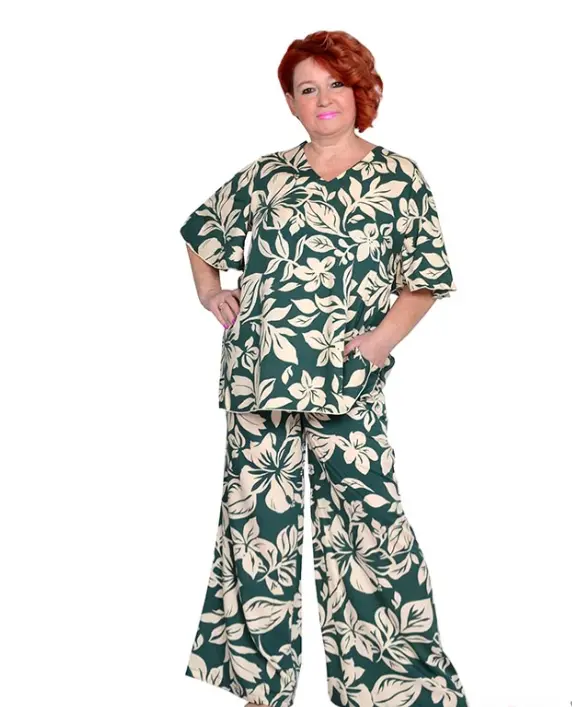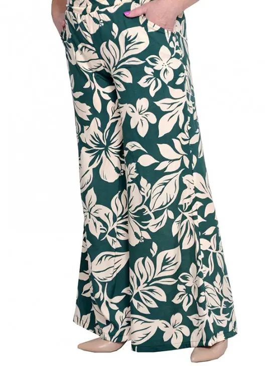 Брюки с карманами, расклешенные из штапеля. Пояс на широкой резинке. Ткань очень приятная к телу.