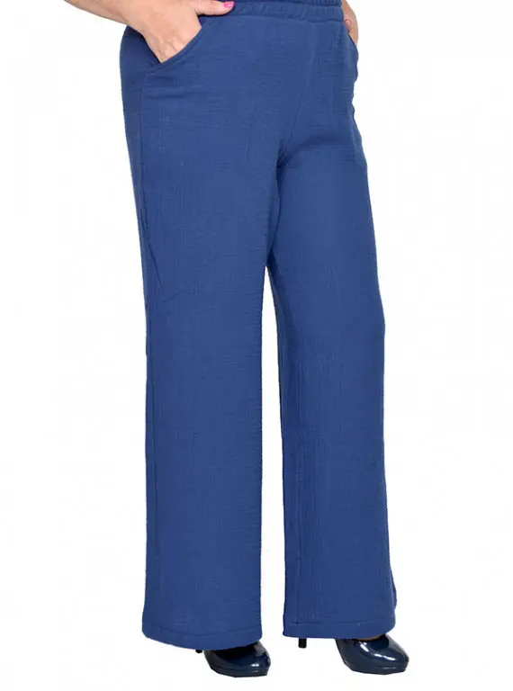 Брюки широкие с карманами из ткани муслин состав хлопок 100%