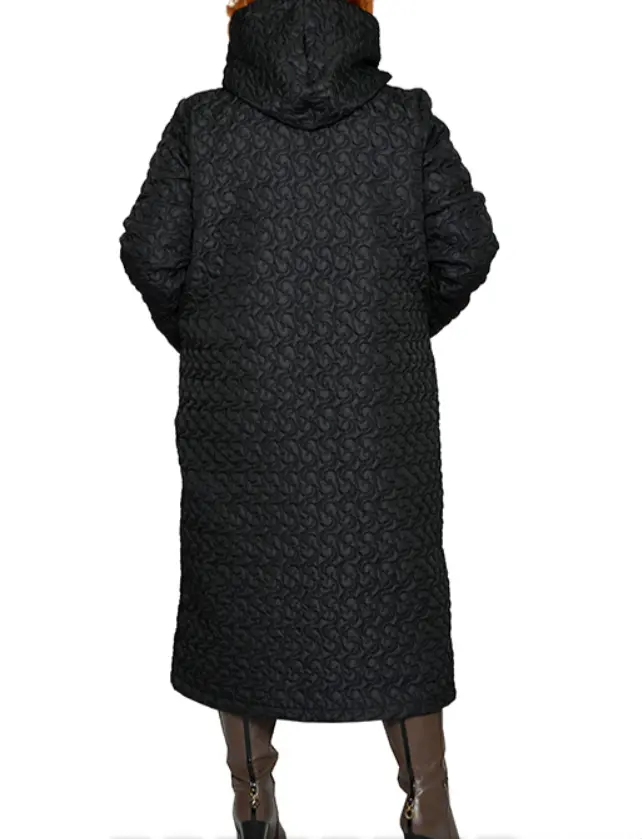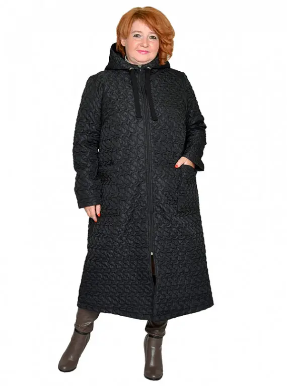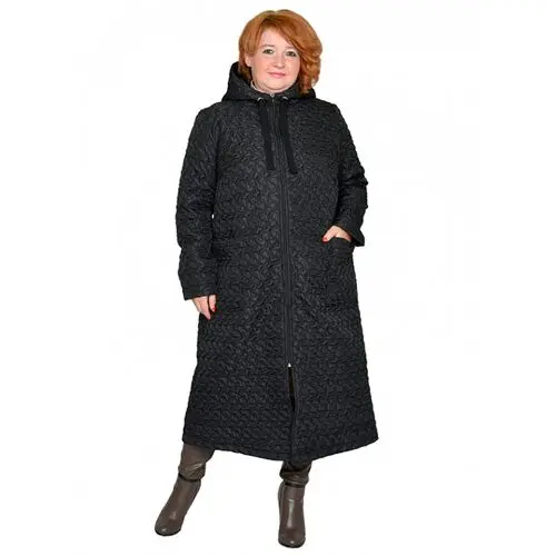 Пальто-плащ из болония стеганного на тонком синтепоне. Состав верха 100% пэ. Модель с хлопковой подкладкой, на молнии, с капюшоном, с карманами. Длина 110-120 см.
