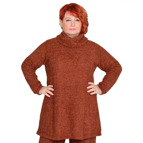 Свитер из трикотажного полотна «АНГОРА» с большим воротником, рукав реглан на манжете. Состав 95% полиакрил и 5% эластан. Ткань плотная, не мнется, хорошо тянется, мягкая, приятная на ощупь. Длина 80-90 см.
