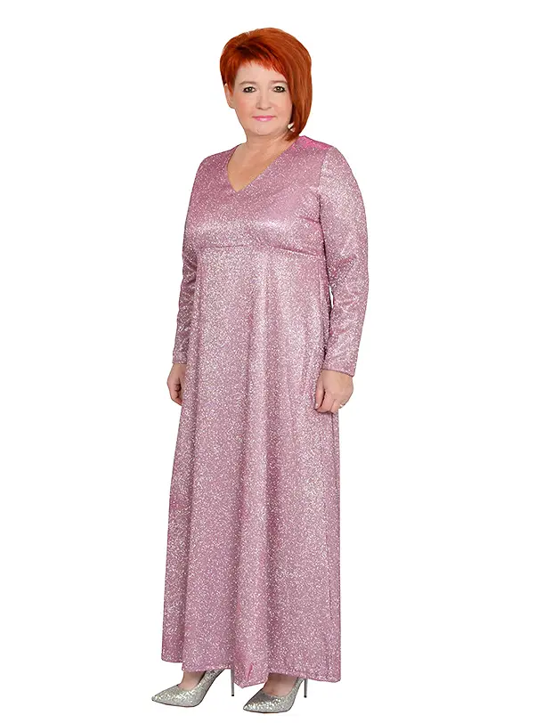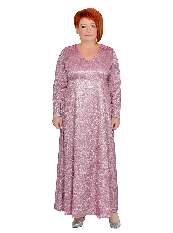 Платье расклешенное из трикотажа масло. Длина макси, с кокеткой, вырез v-образный, рукав длинный. Состав пэ 95% и эластан 5%. Ткань с отливом «хамелеон», при движении меняет оттенок. Ткань приятная к телу, не колется.