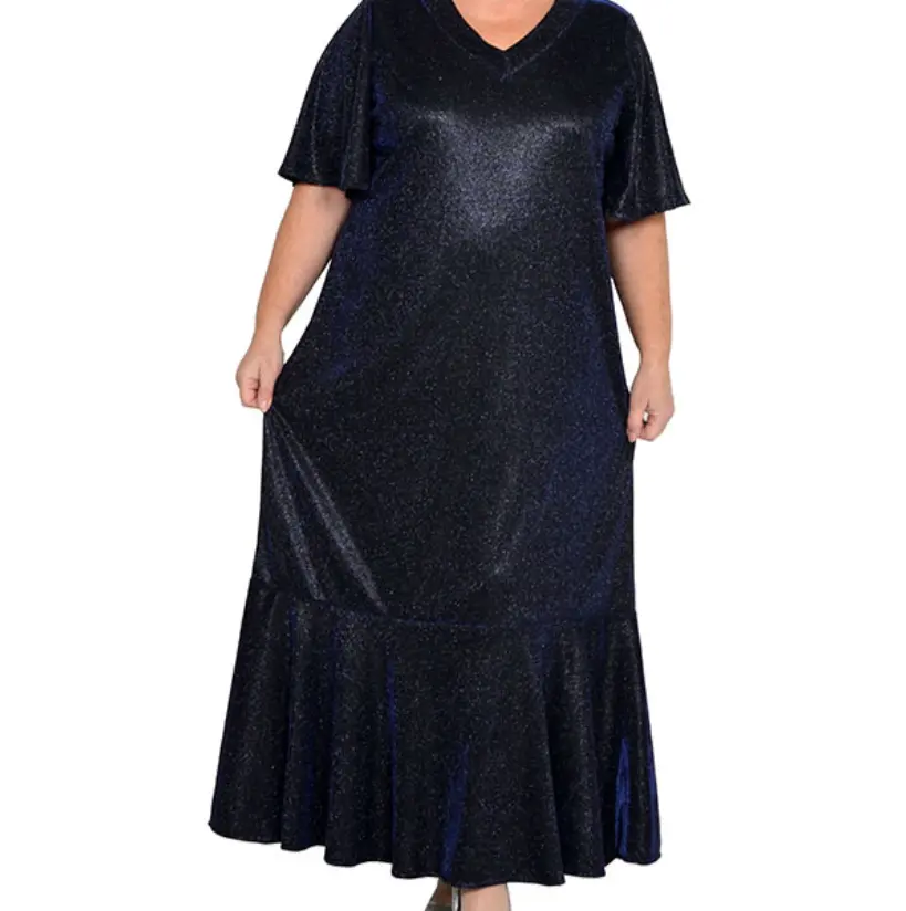 Платье из трикотажного полотна масло. Модель с воланом по низу, расклешенная, рукав-крыло, вырез V-образный. Состав пэ 95% и 5% эластан. Ткань с отливом, приятная к телу, не мнется, не колется. При движении меняет оттенок.