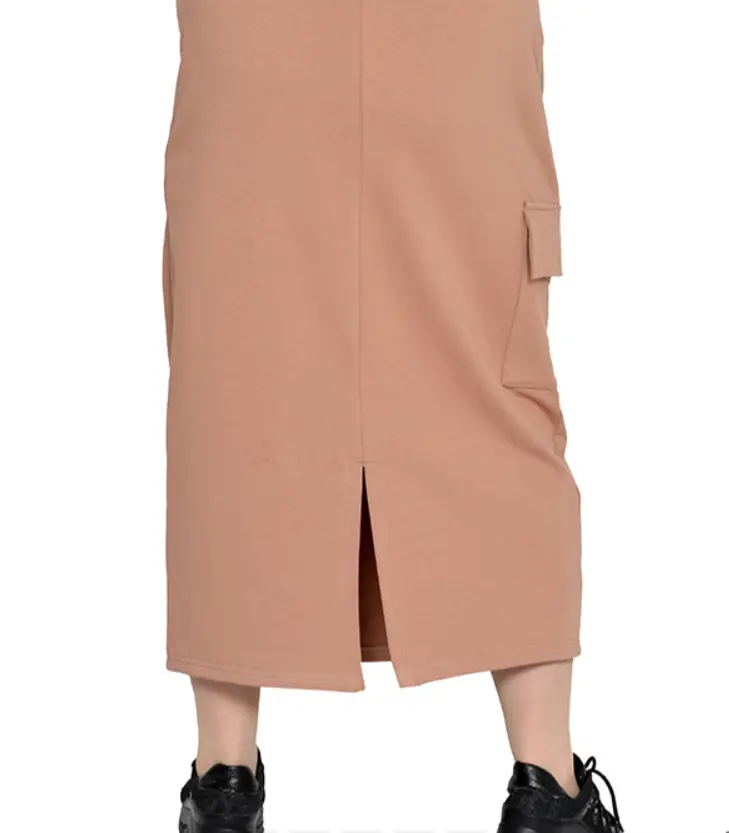 Юбка из ткани футер двух-нитка с карманом клапаном по боковому шву и с разрезом сзади. Состав хлопок 65%, 30% пэ и 5 % эластан. Ткань тянется. Длина 80-90 см.