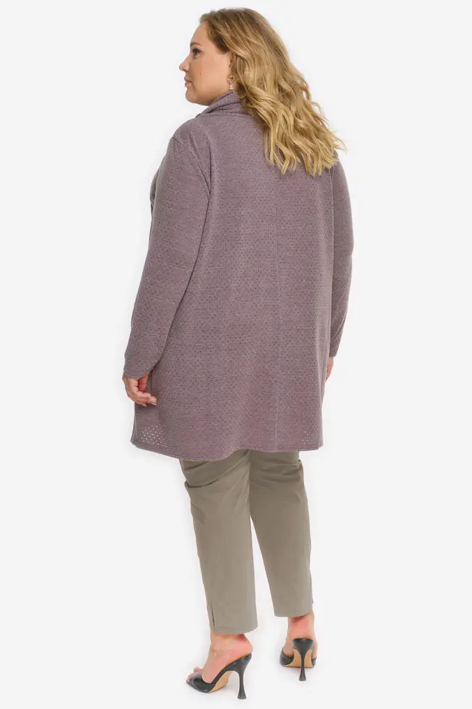 Туника с воротником "хомут", свободная, из джерси с перфорацией, кофейная