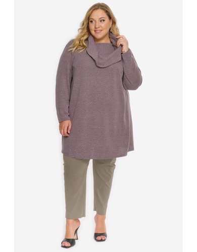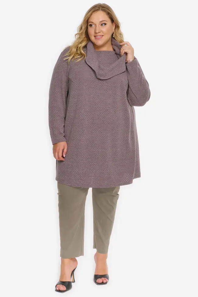 > Туника с воротником "хомут", свободная, из джерси с перфорацией, кофейная