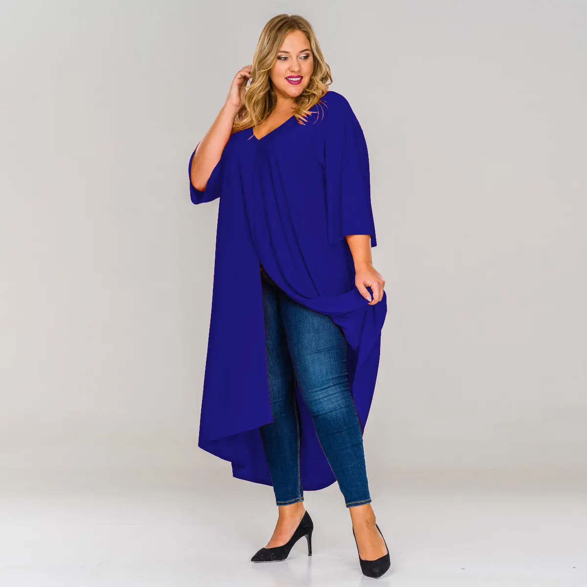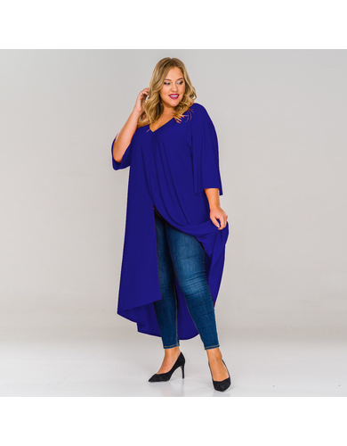 Легкая удлиненная туника с разрезом спереди и широкими рукавами. Составит отличный комплект с джинсами или брюками.