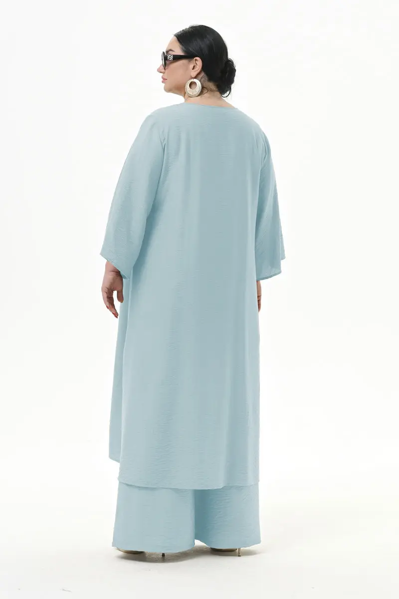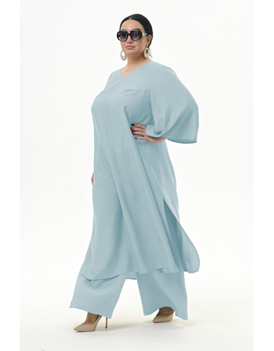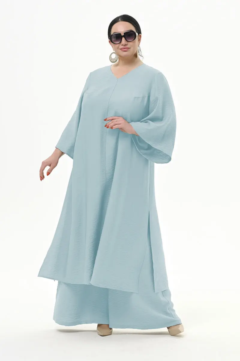 Туника длинная с разрезами из фактурной вискозы,цвет "небесный"