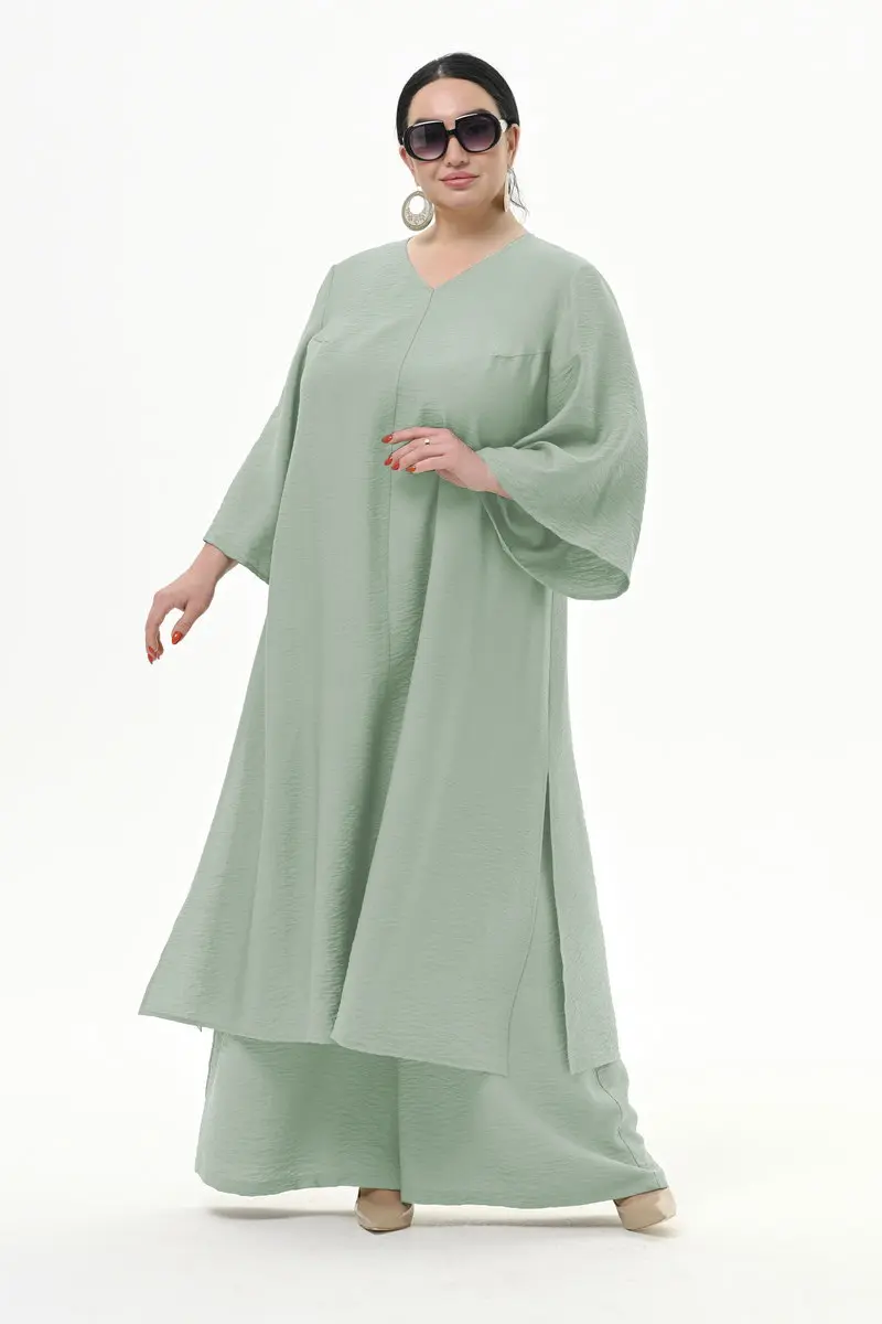 Туника длинная с разрезами из фактурной вискозы,цвет "мята"