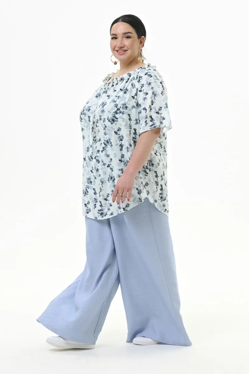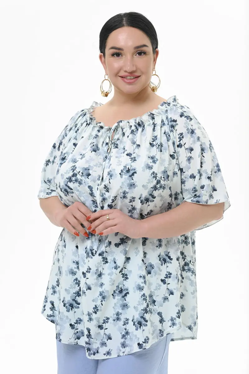 Туника со сборочкой по горловине, штапель "цветочная дымка"