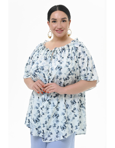 > Туника со сборочкой по горловине, штапель "цветочная дымка"