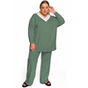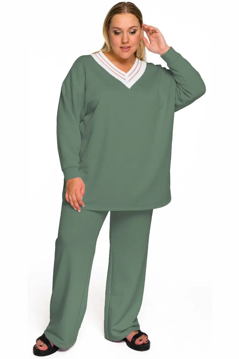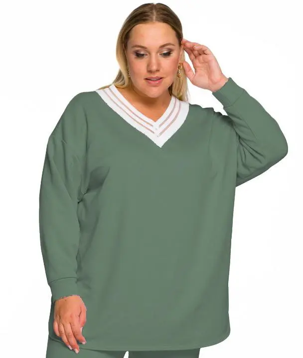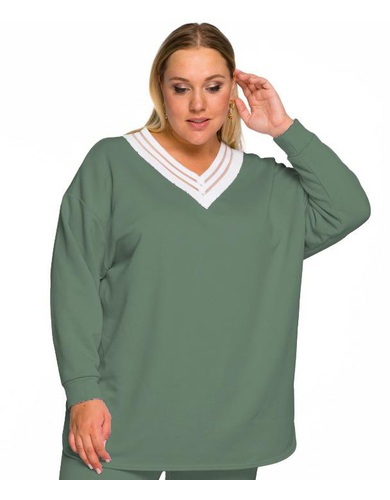 V-вырез горловины оформлен тесьмой молочного оттенка.