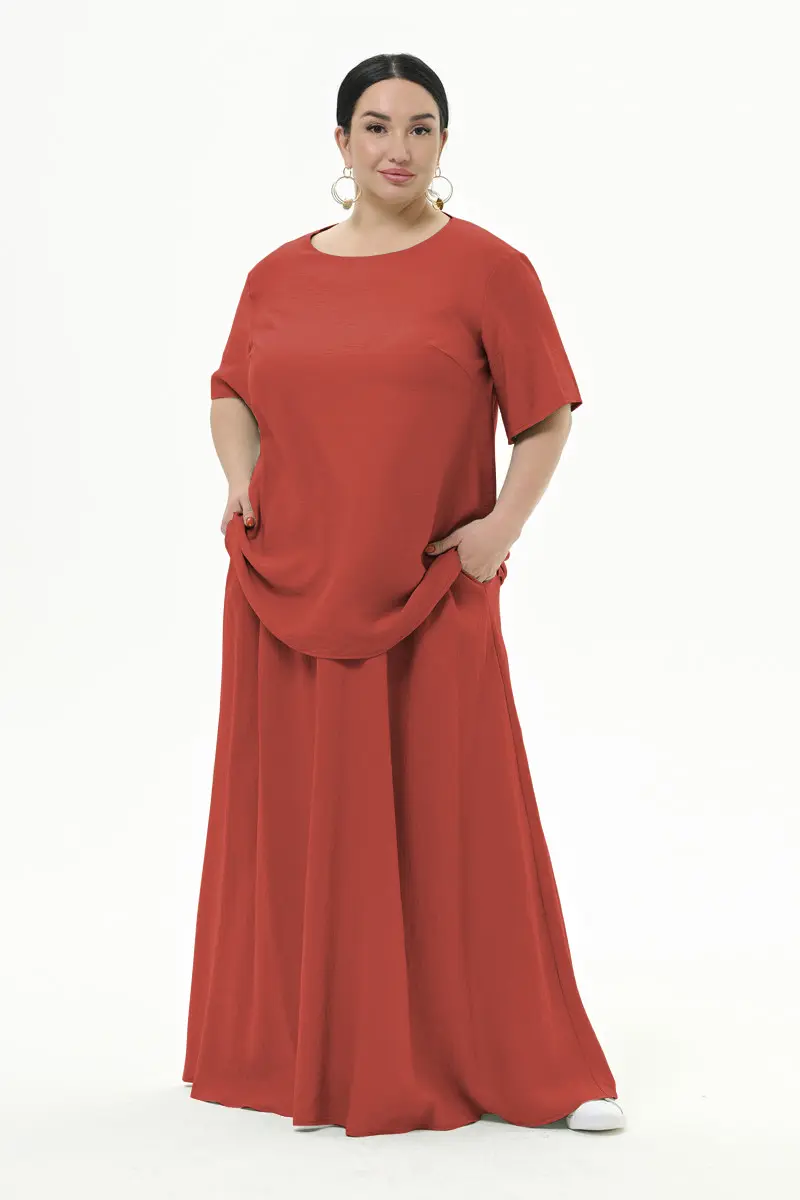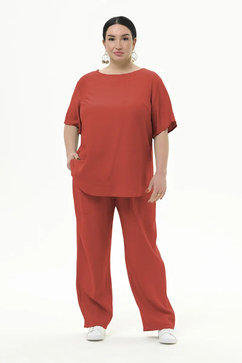 > Блуза прямого силуэта из фактурной вискозы, цвет "паприка"