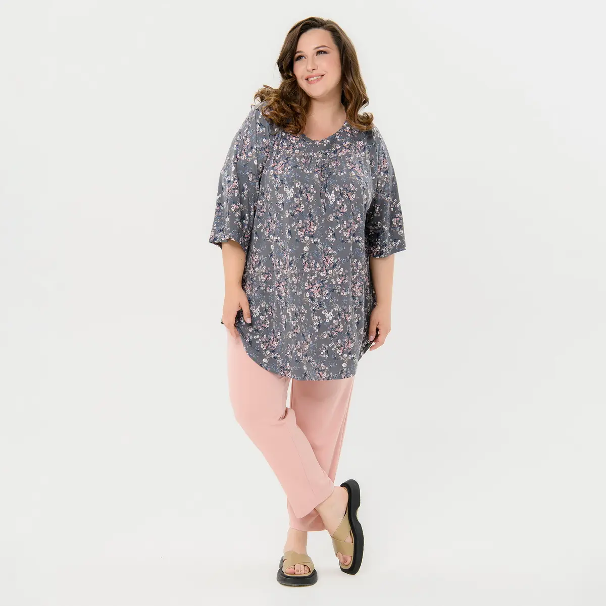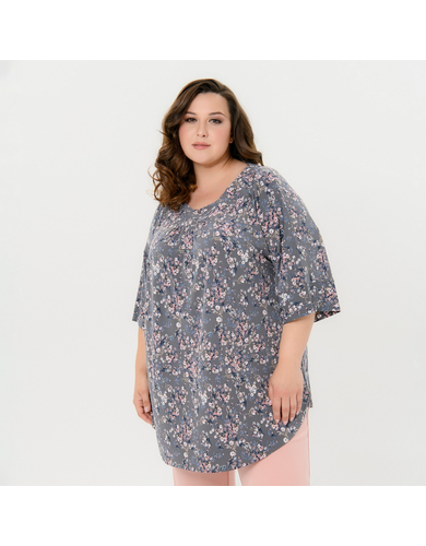 Туника свободная, принт "французский серый"