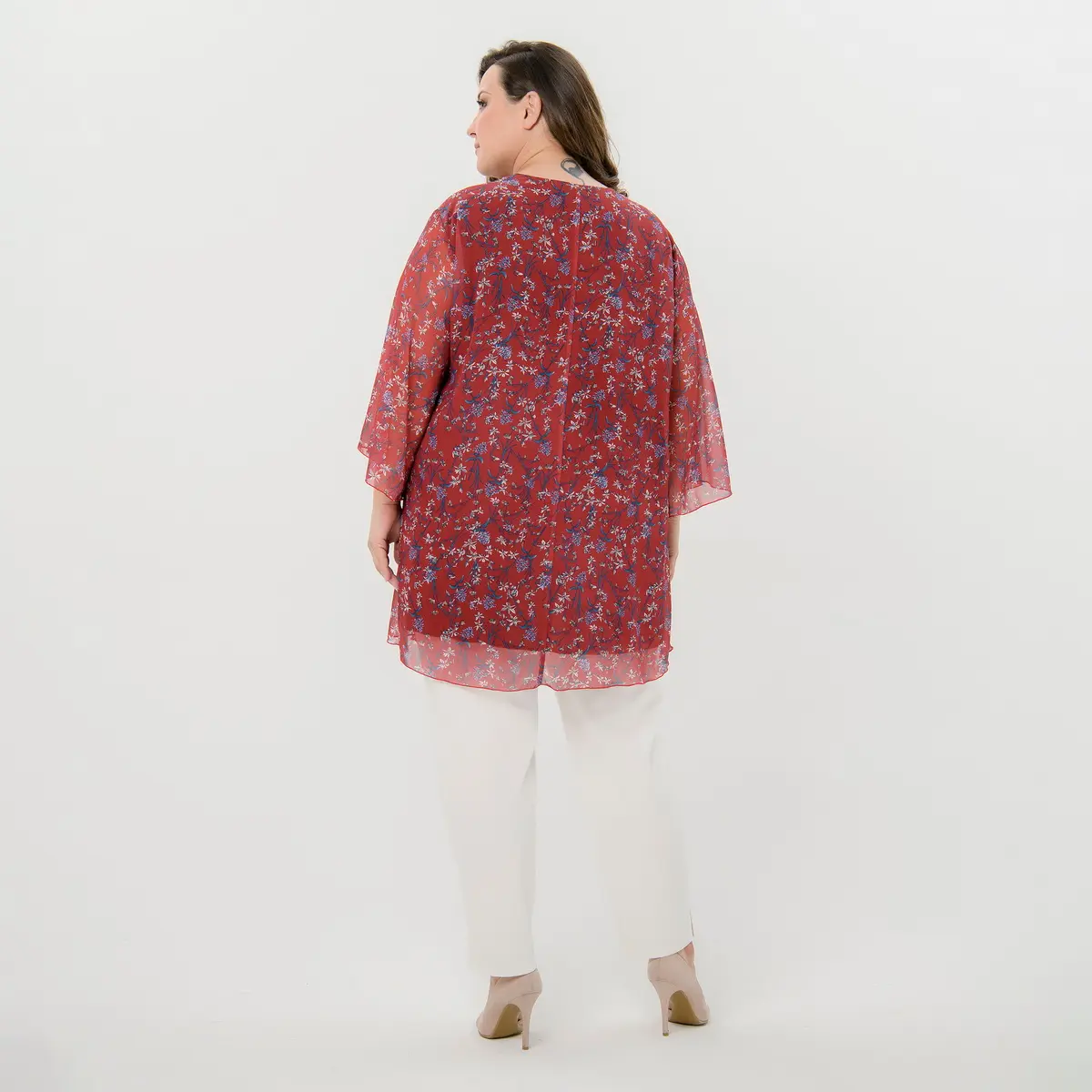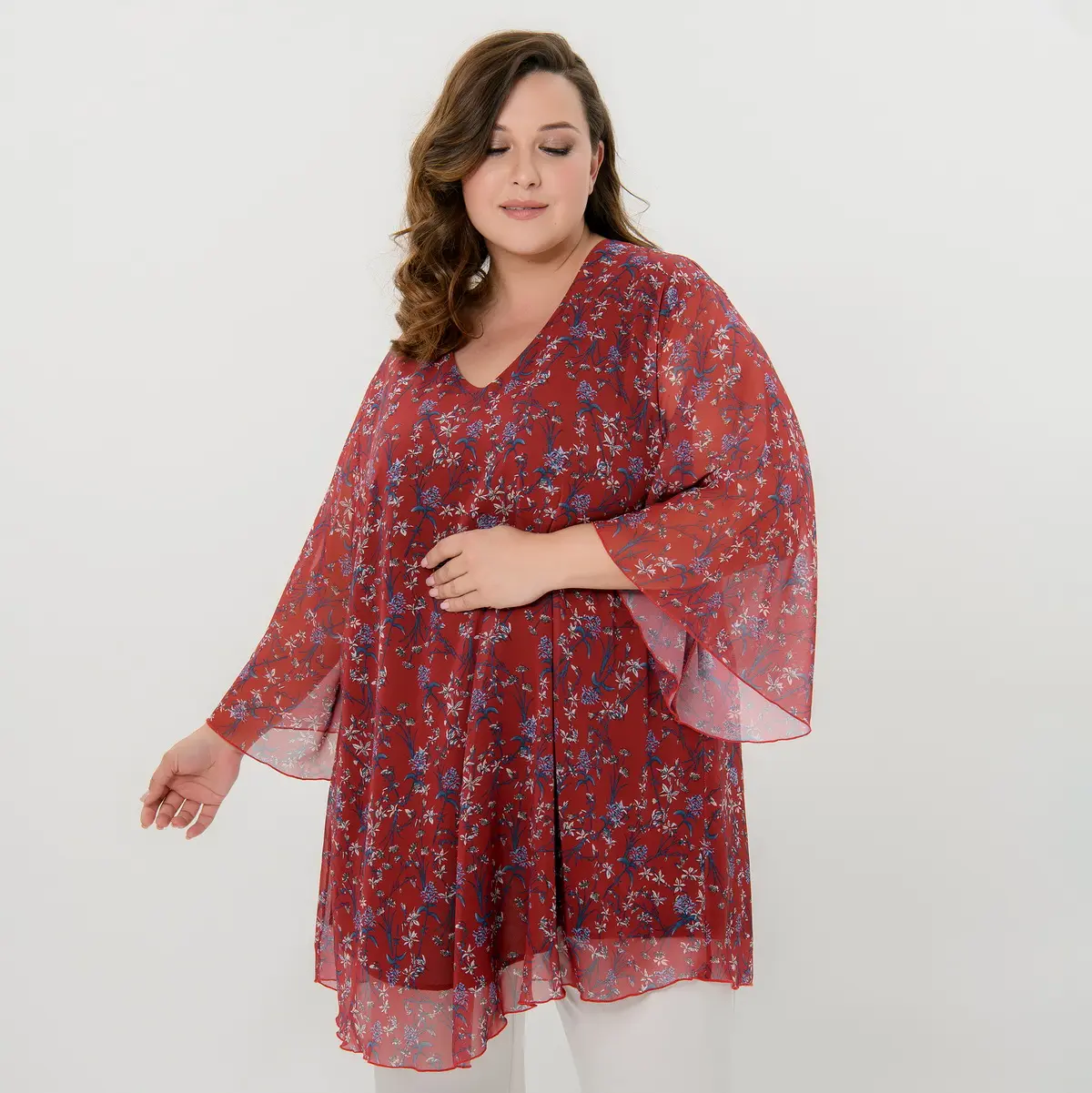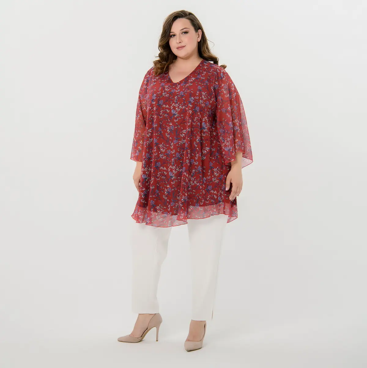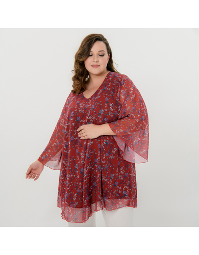 Свободная туника из шифона. V-вырез горловины по переду. Рукав расклешенный. Идеально сочетается с джинсами, зауженными брючками.