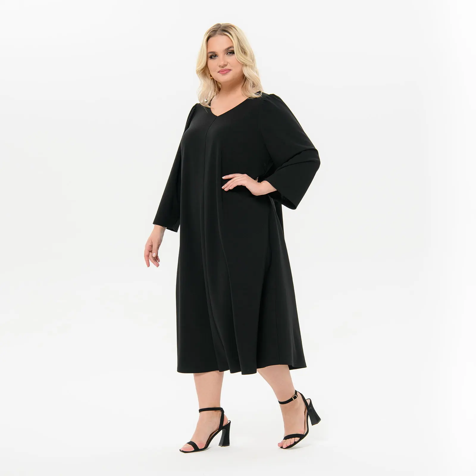 Платье А-силуэта, свободное, из плательного крепа с эластаном.