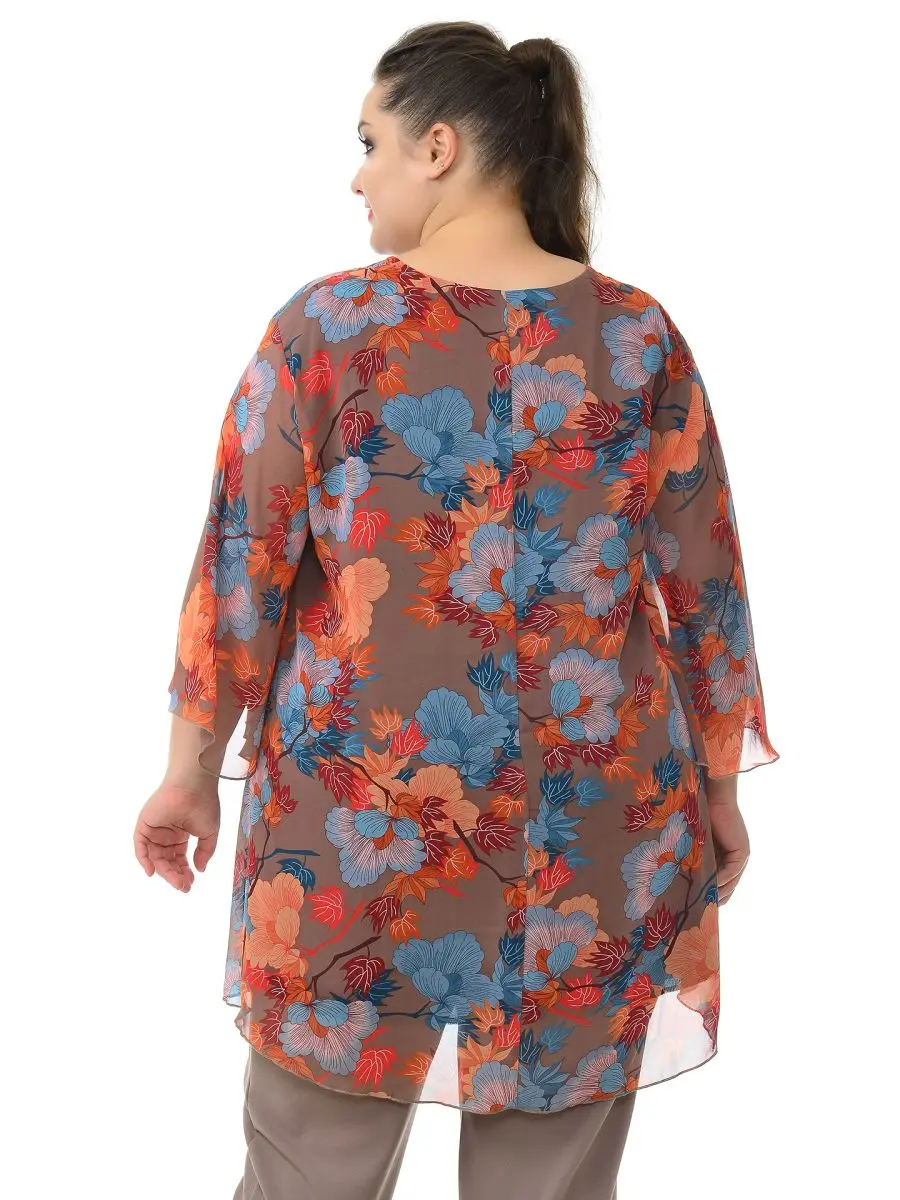 Туника свободная асимметричная, шифон кофейный яркий