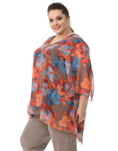 > Туника свободная асимметричная, шифон кофейный яркий