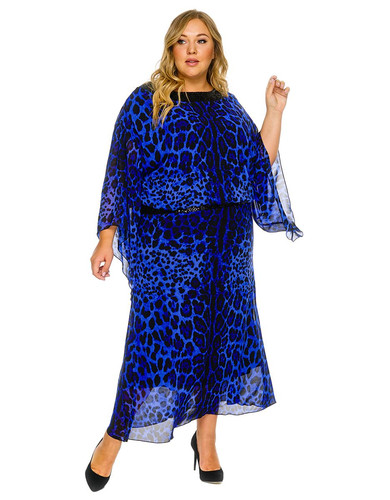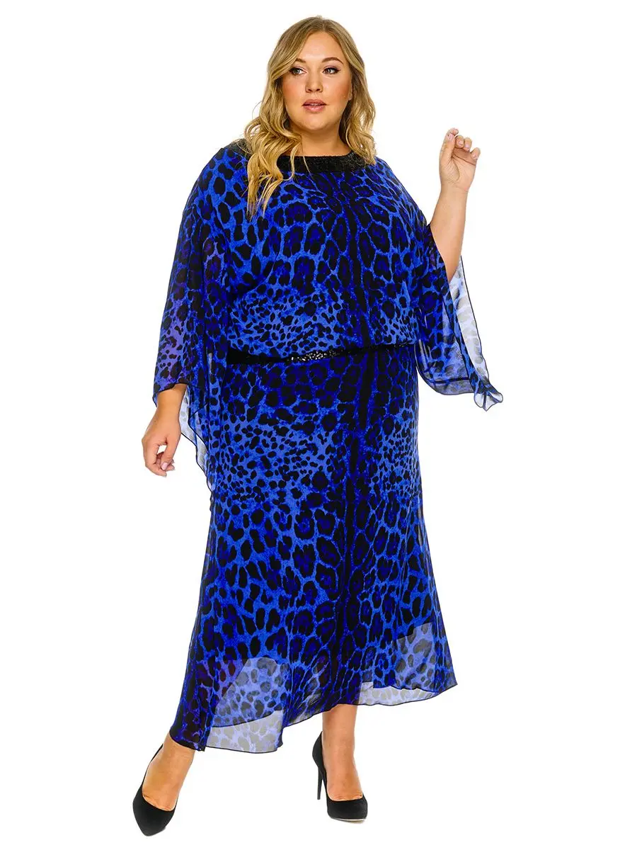 > Платье вечернее из шифона принт синий леопард, пояс и горловина из пайеток