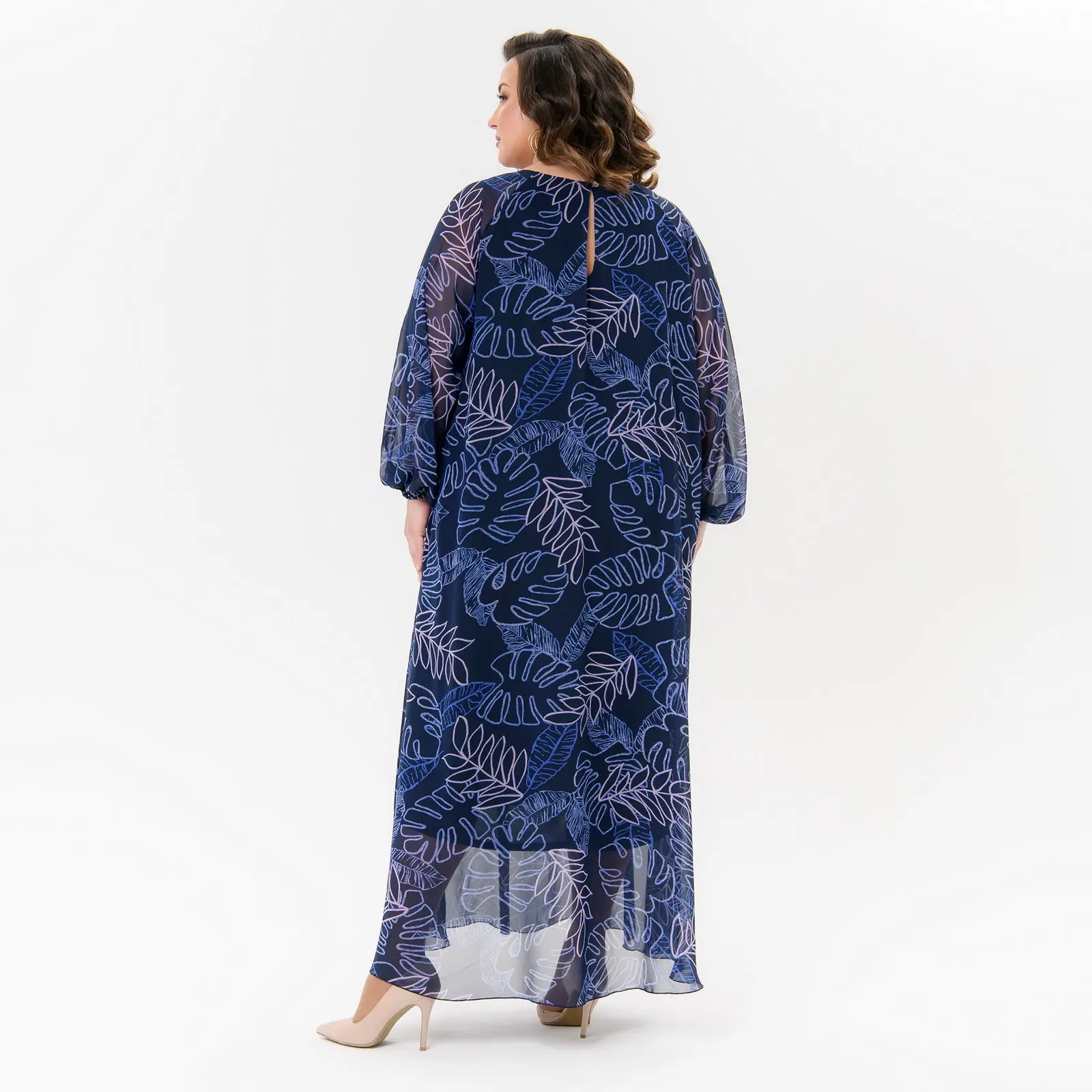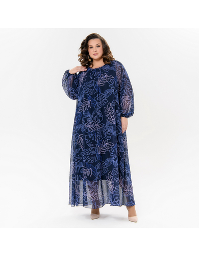 > Платье вечернее из шифона, темно-синее, принт "роскошный"