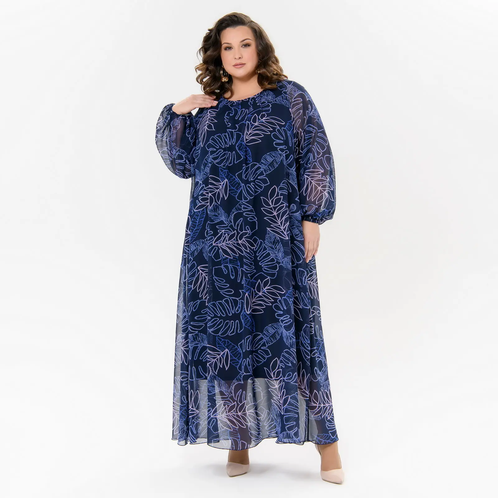 Длинное, вечернее, струящееся платье из тончайшего принтованного шифона.