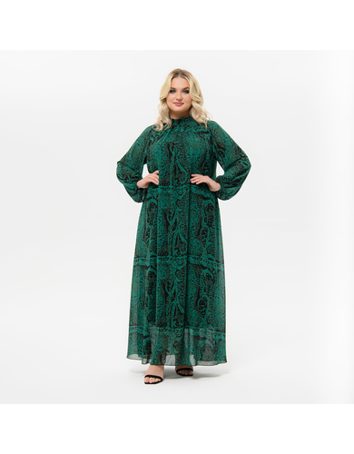 > Платье из шифона с воротником "стоечка", принт изумрудный