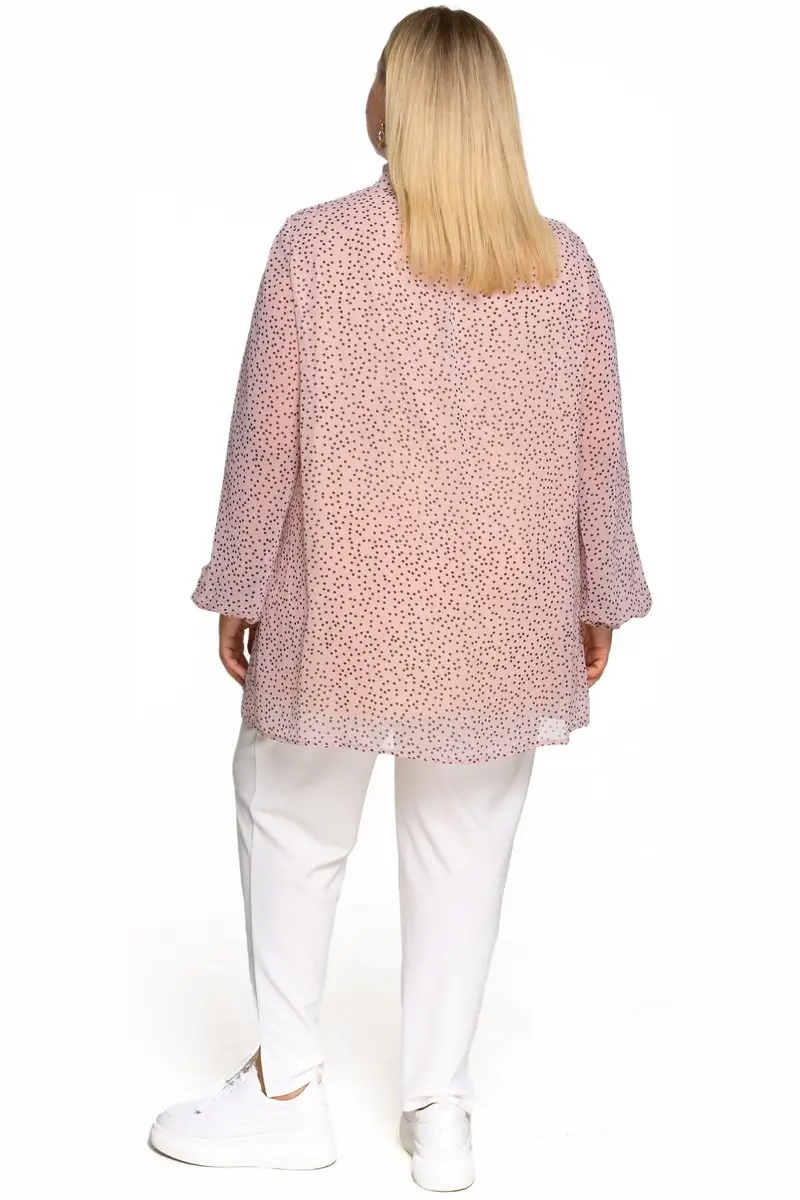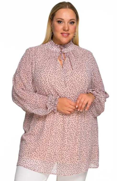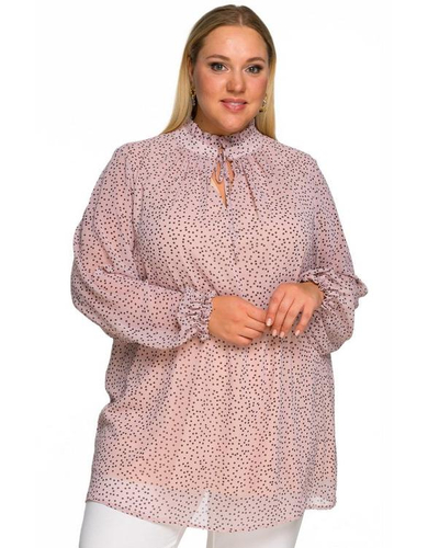 > Блуза со стоечкой, шифон пудровый в черный горошек